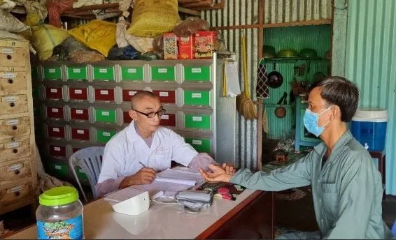 Lương y Lê Phước Rồng đang khám bệnh cho người dân.