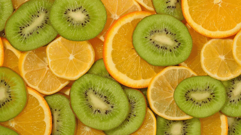 Vitamin C tăng cường sản xuất interferon – protein chống virus tự nhiên. Kiwi chứa vitamin C gấp đôi cam, cùng với enzyme actinidin giúp tiêu hóa protein.